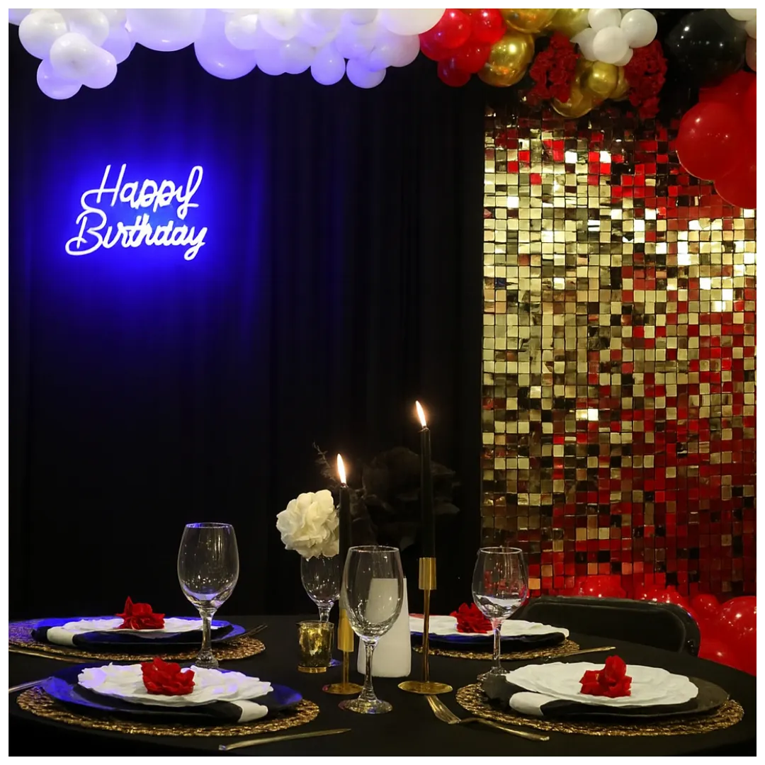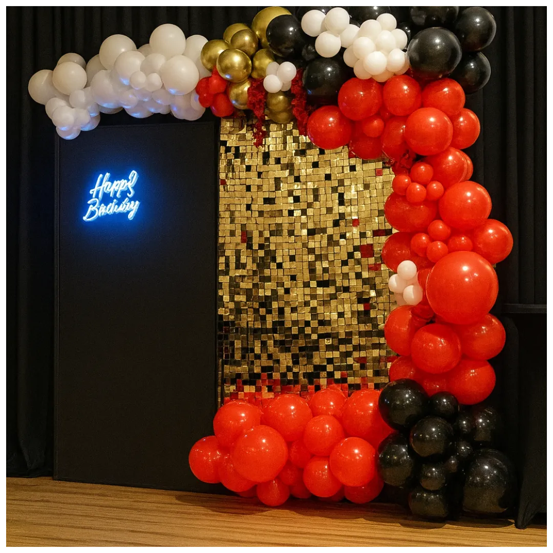 • Add-ons: Fresh flowers, balloon garland or balloon clusters, or custom menus,