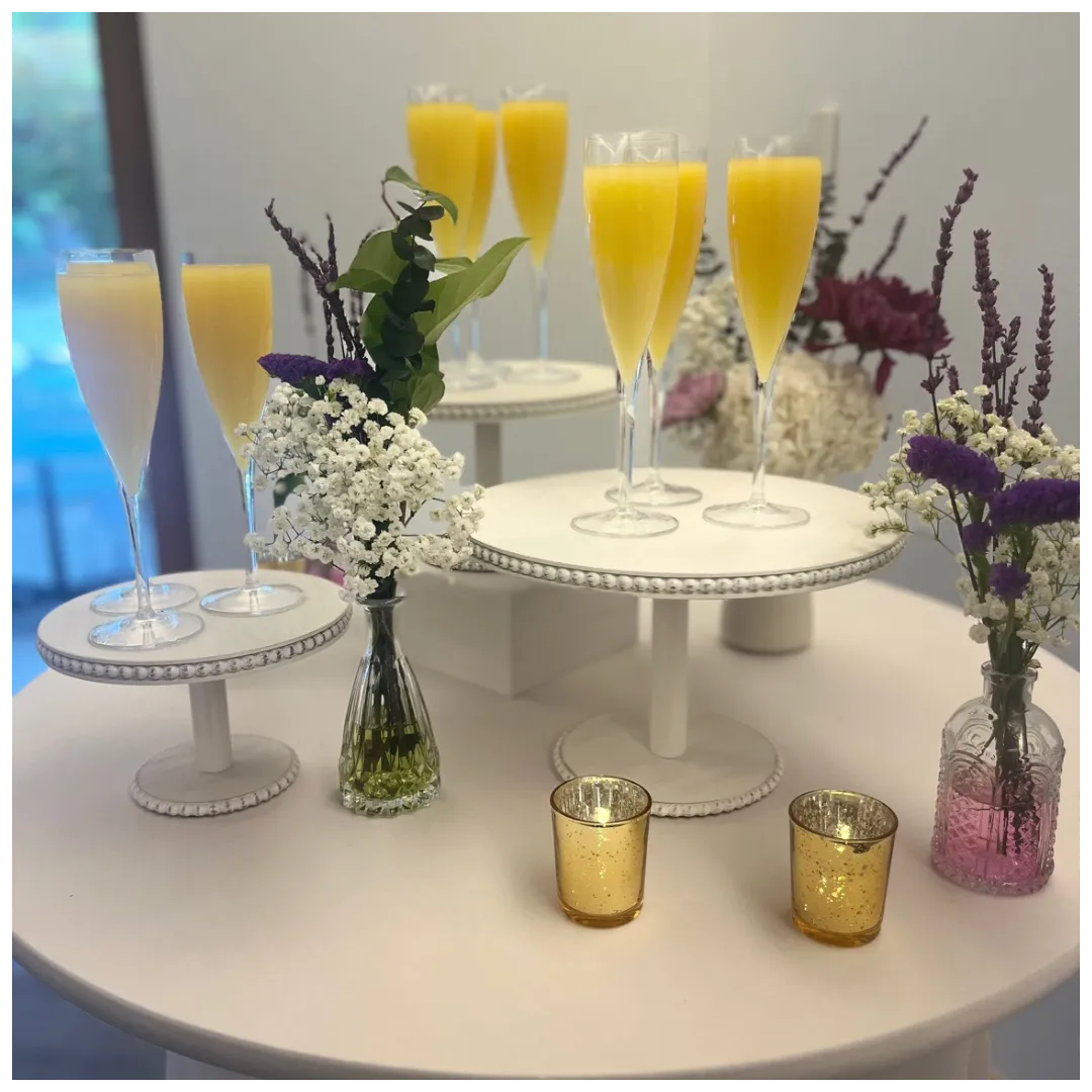 Dessert Table Styling: Includes table linen, cake stands, and decorative trays